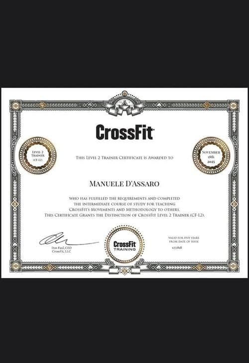 Manuele: L2 CrossFit, Diploma Sthenathlon 1°Livello, Pesistica olimpica 1°Livello